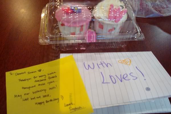 ![]() Sry if this pix looked weird cause i accidentally took it upside down! Urgh more photos took using Landai's phone which are with her nao!!!! Kay so celebrated March&April babies ytd during LCD lesson. ![]() This cake is so not a cake, it was just a big piece of thin brownie hahaha! And i've pestered Hafirul why he didn't bought this cake for Feb babies but nao i don't regret for not having it alr HAHA! Still, it tastes nice lah okay! Aft sch stayed for e-car again, then i remembered this funny scene whrby nickhow & joshua.k kissed hisham on both of his cheeks! Funnydie lah siaaaaaaaaa, they even kissed again to let me take a photo but too bad hisham's sucha spoiler to move away while i was still taking. Supa sad!!!!! :( Headed to bball court find e-car members then watched the guys playing bball, quite nice eh! Started on our e-car trials aftmath! ![]() ![]() 2 trials but unfortunately failed due to cmi ingredients we had on hand! Decided to go vista point in search of baking soda and lemonade for our e-car fuel, alson & zikai met us thr too! Only managed to buy baking soda at shop&save, then went 7-11 & cheers to look for lemonade, sadly didn't found it. ![]() ![]() Instead they're playing at cheers instead! Laughed out loud while the guys trying to get funny with the dog/cat food & sanitary pads!!!! LOL more photos will be put in fb to tag em. ;) Haikel & kx then left aft that. Slacked in vista with Jiale, Shenyu, Alson & Zikai while waiting for Jiale to get her haircut which needed to wait quite awhile outside the salon. Being tempted, i trimmed my fringe too! Haha. Chitchithchatchat somemore aft Jiale left, then we decided to go zikai's hse next week and pulau ubin during june hols! Walked with them till my hse downstairs, i need to pick up a bike lesson with alson soon before june hols if not i couldn't tag along with em for a cycle! :( Rushed and prepared, headed out at 7plus to get Xinmin's birthday present and have a meal with her! :) ![]() ![]() These lil cupcakes are mad kewttttt :3 Dined at pastamania with her as usual, i guess that's kind of our fav hangout restaurant! Passed her my presents, and she was touched ttm especially at the wishes from many ppl which i've collected for her during sch. So much things to talk that day, then we discovered some things . . . . . supa dupa annoyed by some ppl! Sigh. Shan't elaborate. Bused to 888 to meet Alvin, chanced upon Charmaine & Xinzhe so joined em in kfc, chatted and took pixs. ^^ ![]() ![]() ![]() ![]() Waited for arnd 45mins before Alvin came, dulan hor :@ Slacked arnd a playground nearby, walked Xinmin home arnd 10plus then bused home with Alvin. :) Quite an awesome day ytd! And. . . . . . ![]() Happy 15th birthday!!!!!!!! 21/04/10, xos. P/s: Happy birthday to Yisuan(21.04.10) & Yansoon (22.04.10) too! ;) |